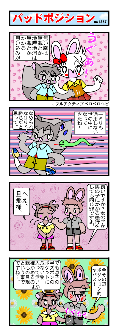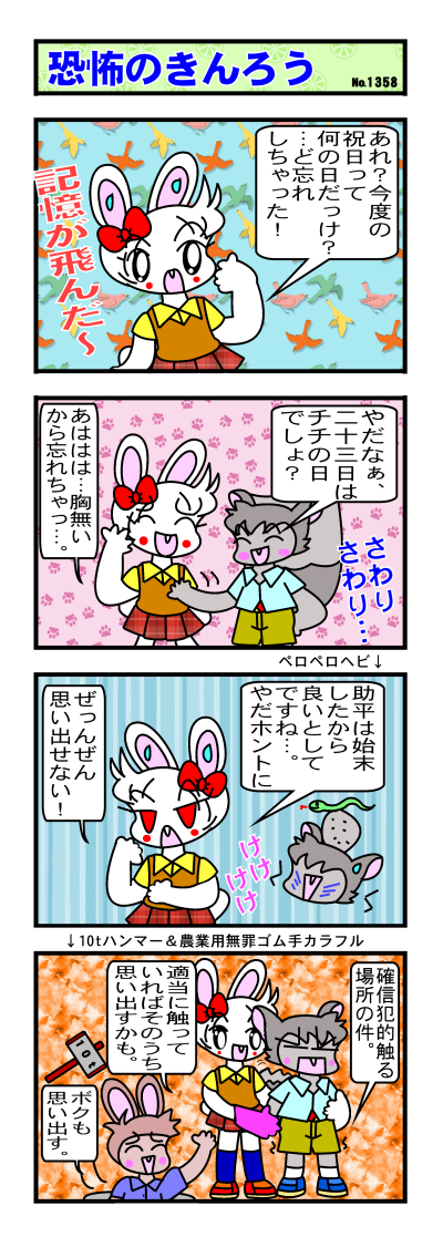 いやさてもこれこそが男女差別の本質であると鋭くえぐるいいじま先生の愚作が読めるのはここだけッツ!!という事で(殴もう手垢の付いたチチの日ネタの感がありますが、いえそんな事はありません、いぶし銀のネタと言へ。(殴2
