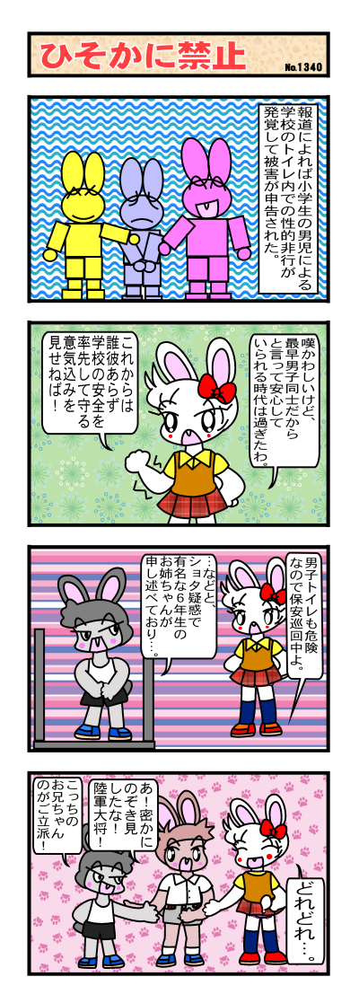 というか女子は男子トイレに入ってもお咎め無しというのが不平等だという世相批判でつね?わかりms(←コラコラ~まぁ入るのは100歩ゆずったとしても,手をかけたらもはやアウトなはずだがそのまま何事もなかったかのような展開ってw(ぉ